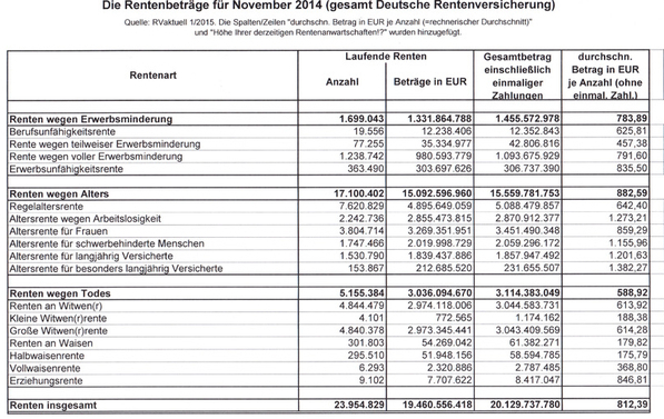 Das bedeutet, dass bei einer Bruttorente von 1.382,27 Euro (durchschnittlich Altersrente für besonders langjährig Versicherte - Stand 11/2014)